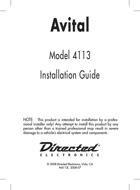 Reading Online AVITAL 4113 INSTALLATION MANUAL Library Binding ManyBooks